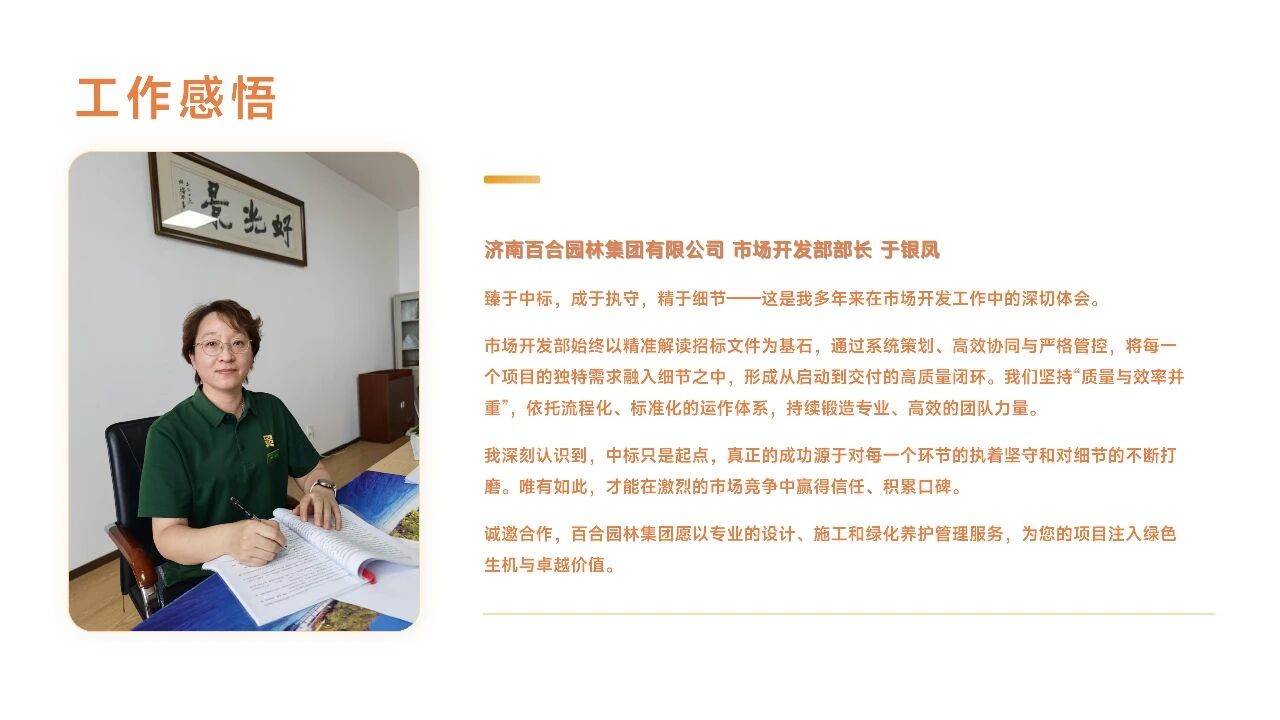 匠心足跡 強(qiáng)調(diào)園林人的專(zhuān)業(yè)精神和一步一個(gè)腳印的奮斗歷程。“百合視界“指通過(guò)員工的視角(感悟和隨手拍)展現(xiàn)的公司風(fēng)貌。突出專(zhuān)業(yè)性和員工視角。