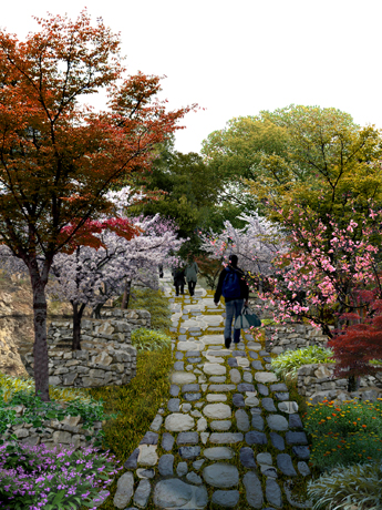 倡導(dǎo)健康生活原則:設(shè)計中將健康生活的理念滲透在區(qū)域性公園的設(shè)計之中,期待攜妻子護(hù)子于山中漫步,體會森林氧吧并登高遠(yuǎn)眺的快樂生活、健康生活的情景。